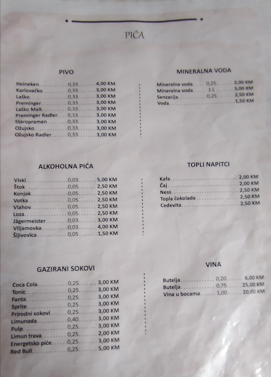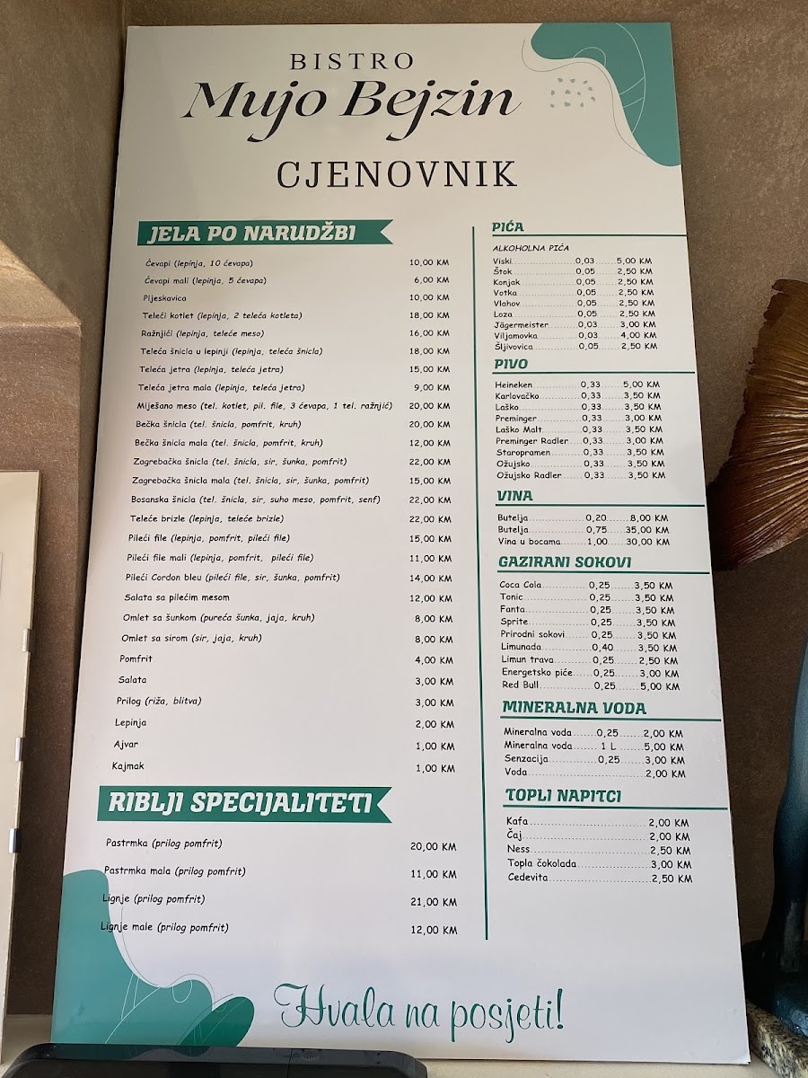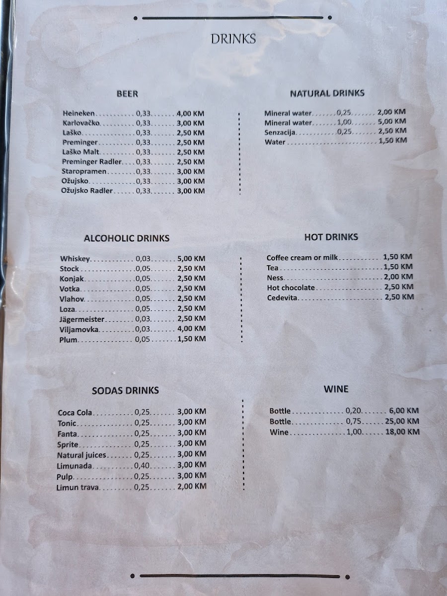 Don't forget to try their range of beverages as well, although it would be wise to manage your thirst—those 33ml beers can leave you looking for more! And for those concerned about currency, Mujo Bejzin accommodates international guests well, accepting euro payments with convenient conversion rates.